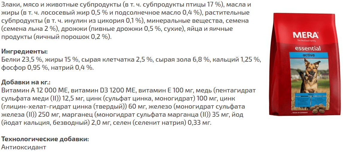 В составе собачьего корма, как правило, имеются разнообразные витаминные и минеральные добавки, которые добавлены туда отчасти из-за недостатка минералов и витаминов в исходном сырье, отчасти из-за особенностей технологического процесса производства сухих кормов. Это норма отрасли, а потому не является прямым показателем высокого или низкого качества рациона. Информация о добавках к данному рациону на общедоступных ресурсах не содержится.