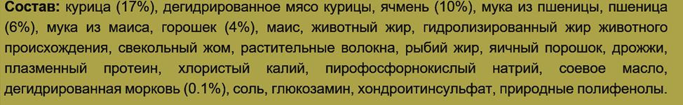 Ингредиенты, стоящие на первых позициях, и определяют качество корма: