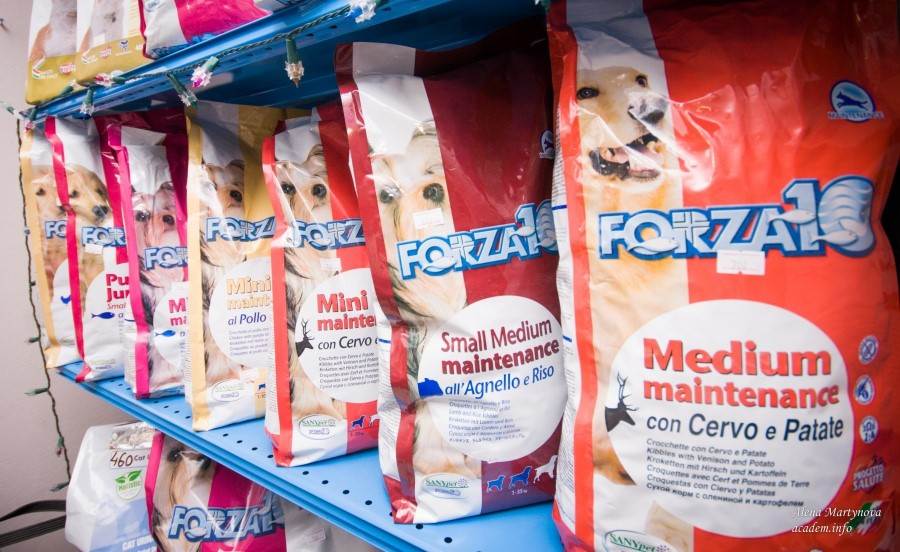 Forza 10 представляет собой корм премиум-класса. Его основные преимущества заключаются в относительно низкой цене и большом витаминно-минеральном комплексе, который способствует нормализации работы ЖКТ, улучшению состояния шерсти и общего состояния собаки. Продукция производится в Италии и не особо известна в России, поэтому найти ее на прилавках зоомагазинов часто проблематично.