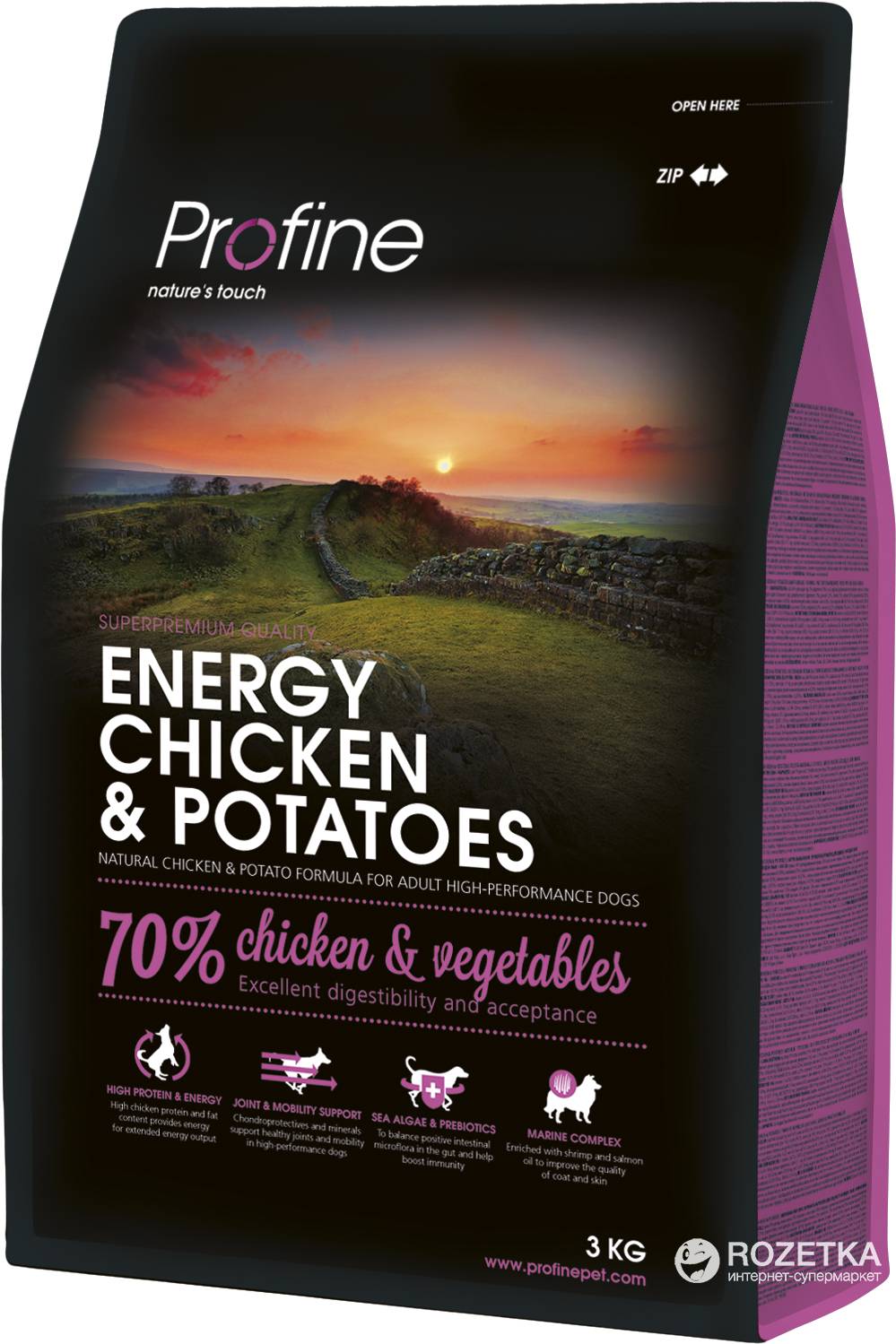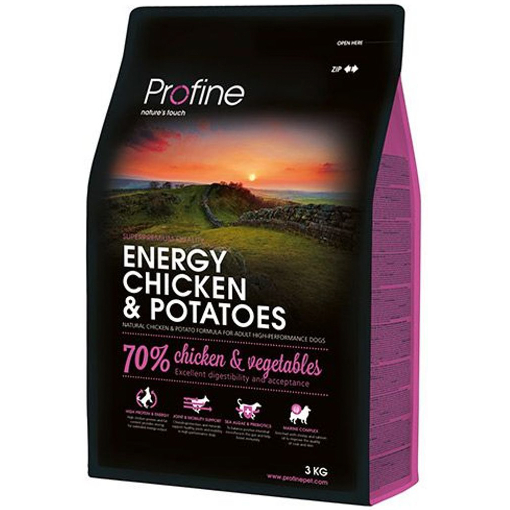 - Energy Chicken & Potatoes – корм с курицей для взрослых собак старше 1 года, ведущих активный образ жизни. Имеет высокое содержание белка и жира.