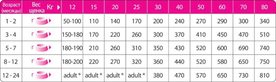 Для самых маленьких щенков есть корм Starter, который подходит для беременных и кормящих сук, а также сухое молоко для кормления малышей с момента рождения до 2х месяцев (Baby Milk).