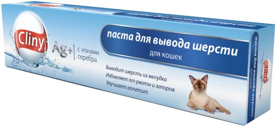 Ещё одно действенное средство для выведения шерсти из желудка кошки — паста. Её предлагают бренды Gimpet, Cliny, Beaphar и другие. Формула этих препаратов во многом схожа с описанной выше. Она включает неперевариваемую клетчатку, полиненасыщенные масла, ТГОС (трансгалактоолигосахариды), порошок семени подорожника, экстракт солода, скомбинированные в разных вариациях.