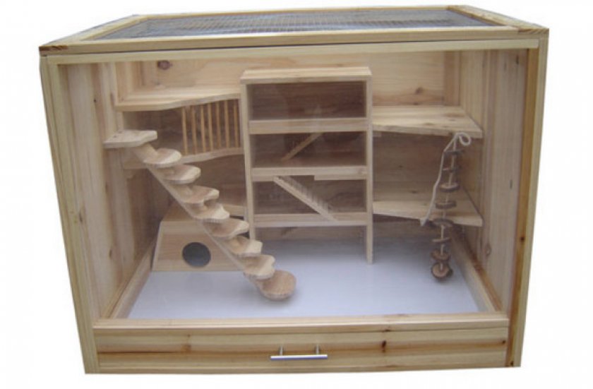 Внутри жилья грызуна необходимо установить деревянных домик, в котором зверек будет спать в дневные часы и прятаться от внешнего мира.