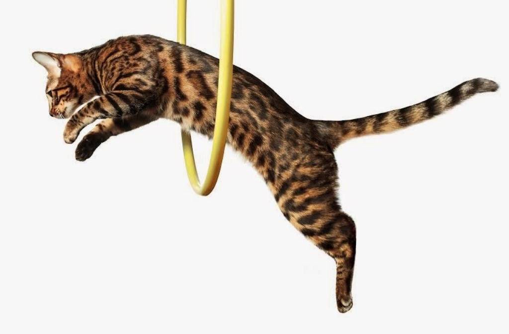Рассмотрим на примере обруча. Сначала стоит его положить на пол и поманить кошку едой, чтобы она, идя за ней, прошла через обруч. Если не идет сама, то нужно её в этом помочь. После сразу дать вознаграждение. Так кошка со временем догадается, что её дают лакомство за определенное действие. После этого она сама начнет делать, что от неё требуют. Потом со временем обруч нужно приподнимать, и кошка начнет через него прыгать. Примерно также стоит поступать с остальными трюками.