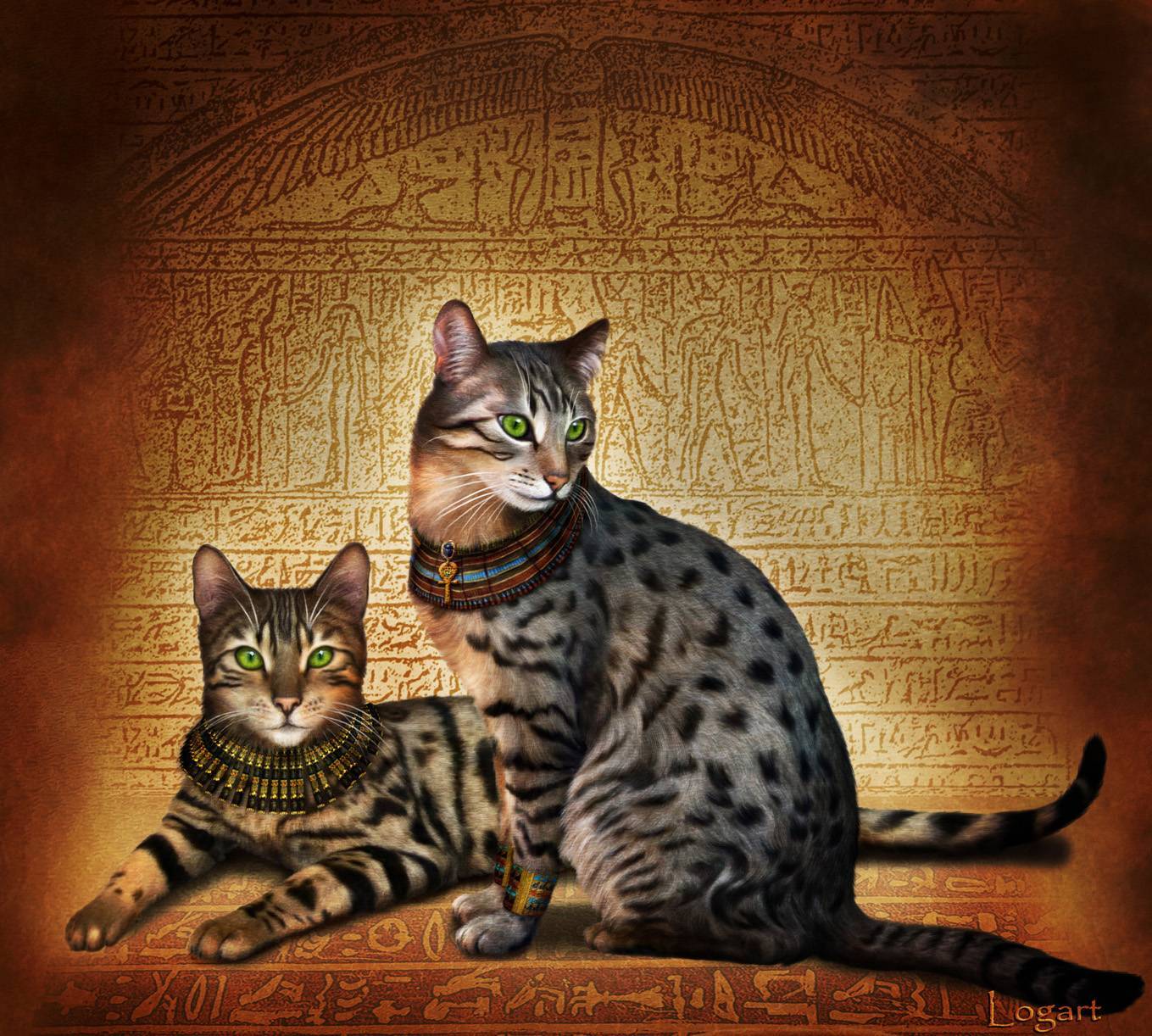Фигурки кошек, похожих на современных мау, имеются на большинстве древнеегипетских барельефов. Их рисовали рядом с изображениями фараонов и их жен. За убийство этих животных наказывали по закону. А мумия умершей кошки помещалась в дорогой саркофаг и хоронилась с почестями.