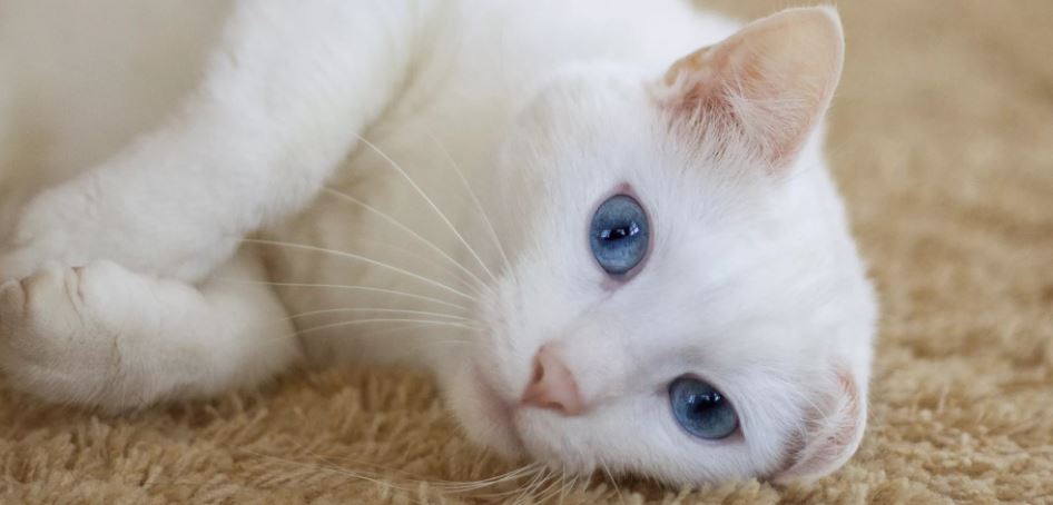 Голубые глаза у кошки в сочетании с белой шубкой зависят от трех причин: