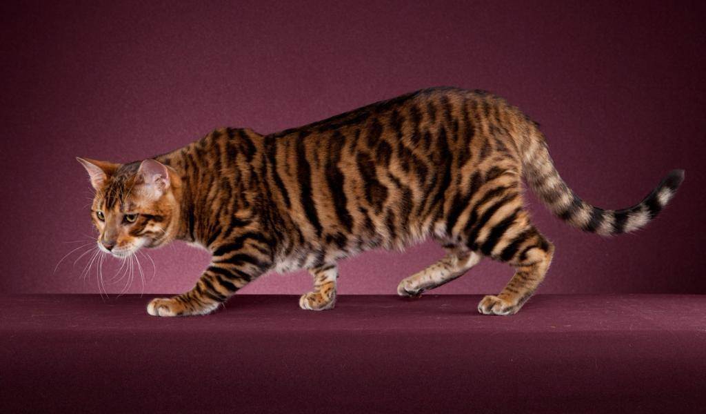 Семейство кошачьих относится к группе млекопитающих из отряда хищные, обитают они по всему миру. Одомашнивание и искусственное разведение новых пород радует присутствием в домашних условиях питомца необычной окраски. Обязательное условие – темные полосы и пятна, напоминающие раскраску тигра, леопарда или ягуара. Цвет – от желтого и песочного оттенка до темно-коричневого. Строение тела напоминает хищные виды диких кошек – длинный хвост, небольшие лапы, голова с широким носом и тонкое удлиненное тело с мощной шеей. Тигр в миниатюрном виде.