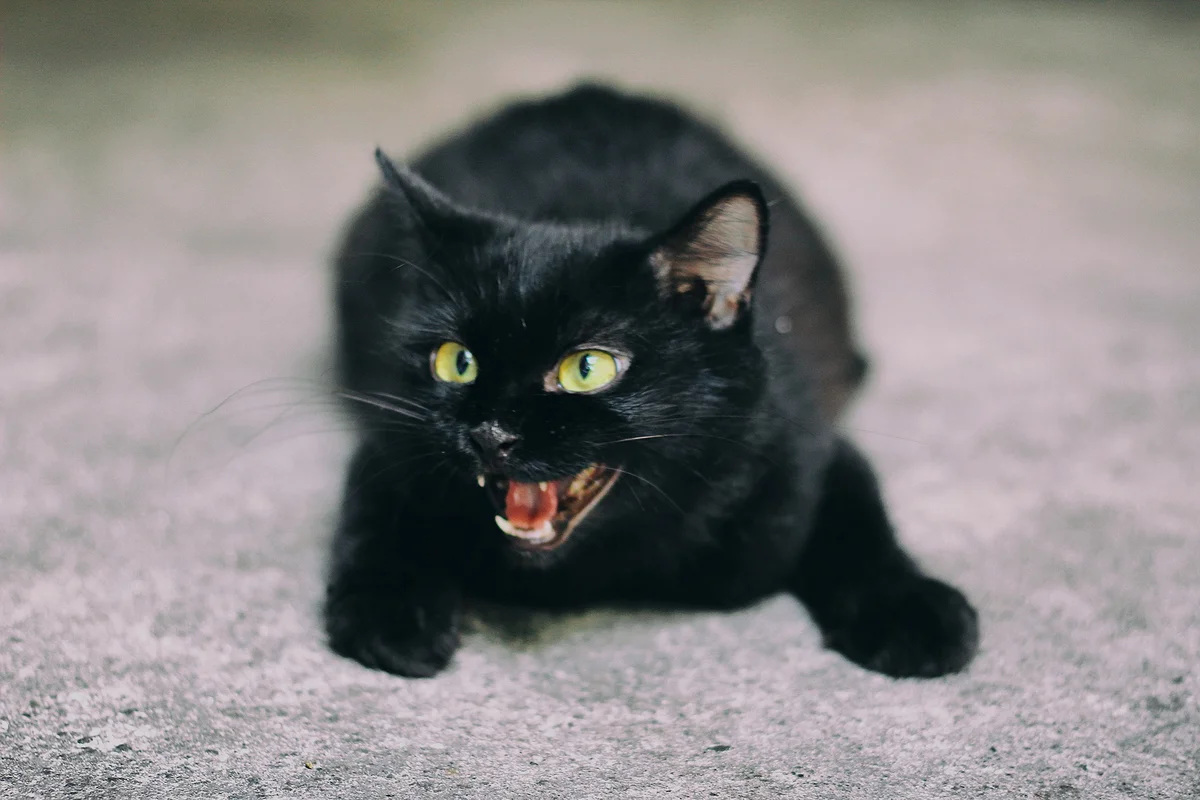 Шипящая черная кошка