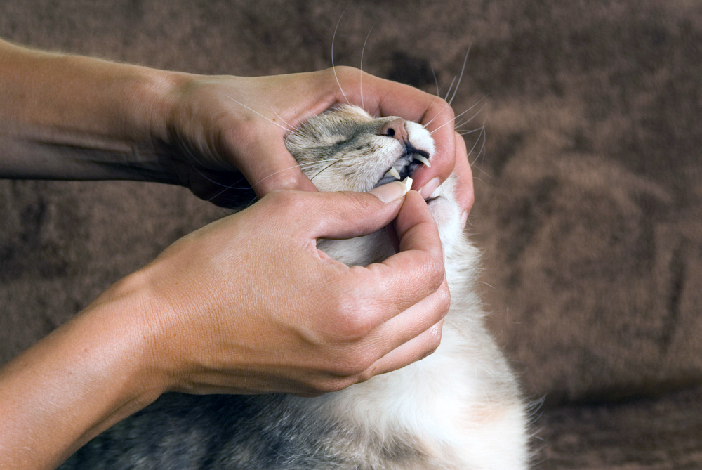 Если кошка не строптивая, то можно, открыв пасть животному, положить таблетку «Кот Баюн» на корень языка, закрыть пасть и, слегка придерживая, подождать, пока кошка сама не проглотит пилюлю.