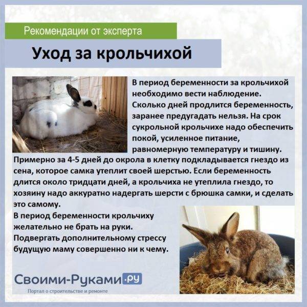 Когда крольчиха начинает строить гнездо, до родов остается 2–3 дня. Правда, также поступают самки при ложной беременности.