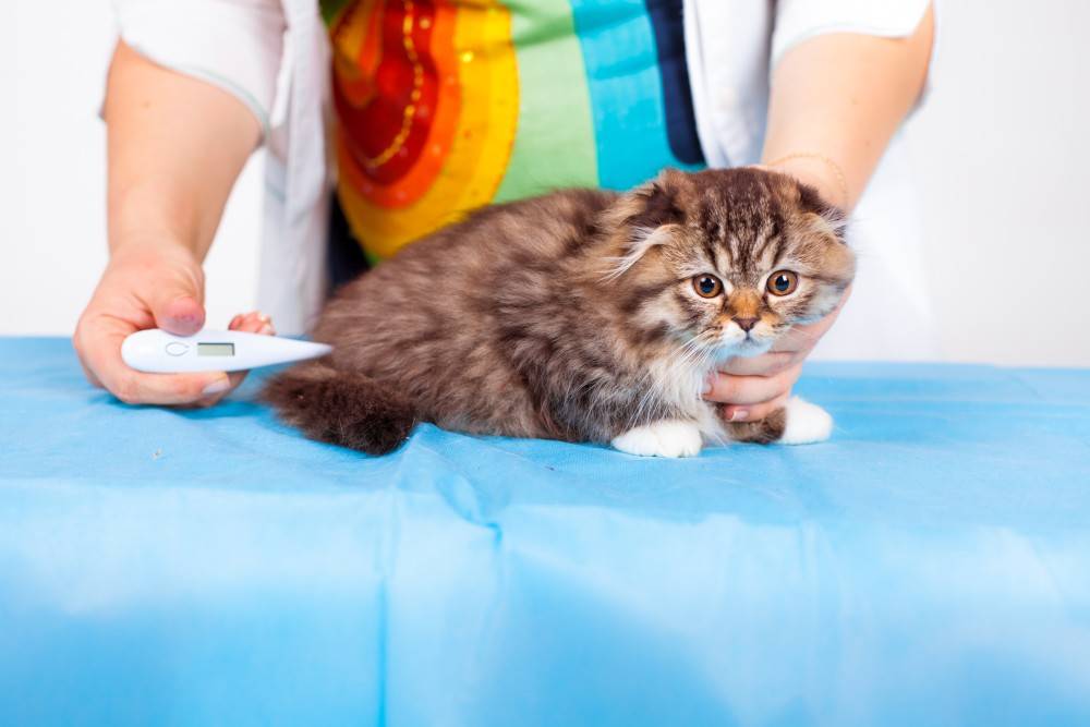 - Измерить температуру. В норме у кошек она составляет 38–39 градусов.