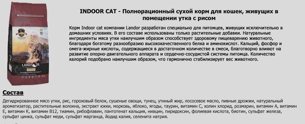 Рационы Ландор для кошек относятся к супер-премиум классу. Также фирма производит продукцию Landor для собак. Информацию о корме можно посмотреть на официальном сайте производителя landor.su.