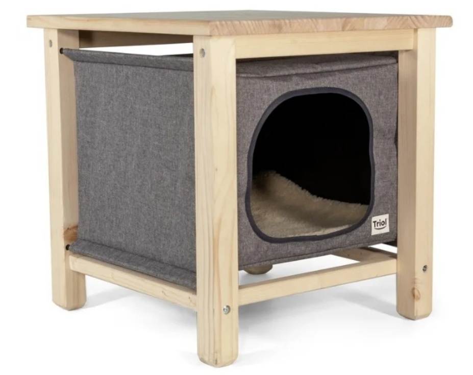 - переверните старый столик и отпилите у него ножки – и вы получите оригинальный деревянный лежак для своего питомца