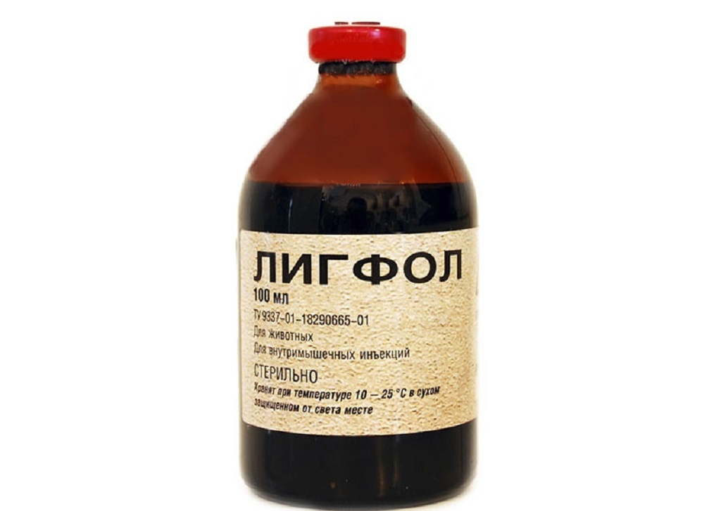 Визуально Лигфол представляет собой темно-коричневую жидкость с легким специфическим запахом. Его производят расфасованным в стерильные флаконы разного объема для удобства использования животным различных весовых категорий.