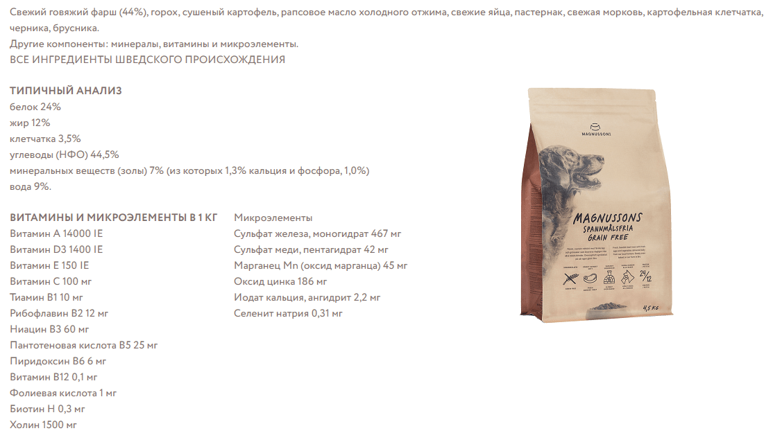 - Состав корма Magnusson для собак