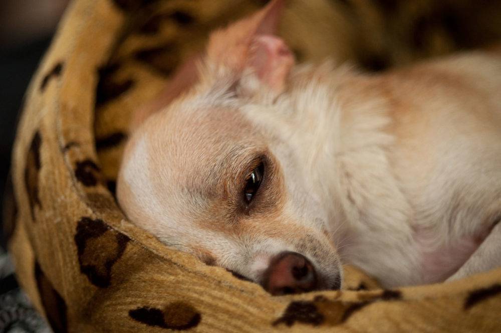 Собака часто спит, её активность резко падает.