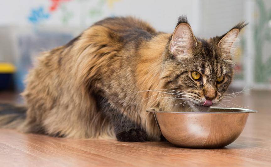 Мейн-куны любят играть с водой, поэтому посуду для питья для них стоит выбрать с тяжёлым дном, высокими краями и широкую, чтобы было меньше шансов разлить воду.