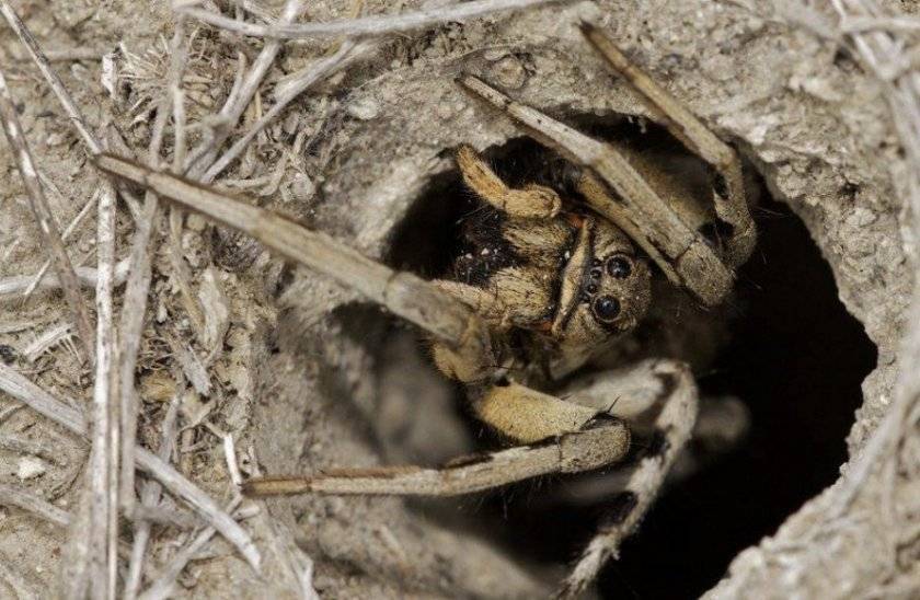 Южнорусский тарантул – это охотник, сидящий в засаде, которой становится нора, вырытая вглубь на 50-60 см. О том, что происходит вверху, паук узнает по колебаниям паутины: ею он предусмотрительно оплетает стенки своего убежища.