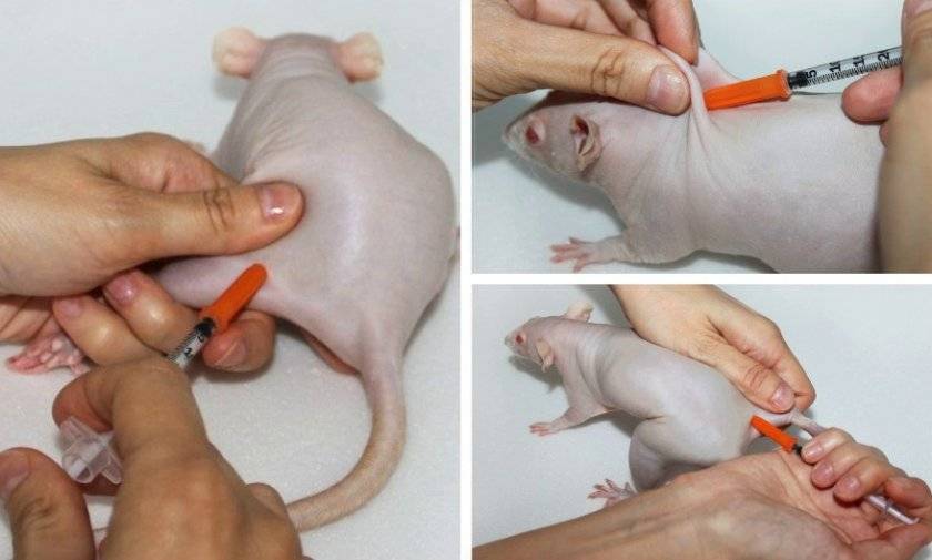 Если вы ищете наиболее эффективный способ применения лекарств, то это, конечно же, уколы. Сделать крысе укол, безусловно, совсем не просто. Подкожные инъекции вводятся в шейную складку. Внутримышечные нужно колоть в мышцы задних лап. Лучше всего делать уколы тонким инсулиновым шприцом. Когда будет проводиться манипуляция, потребуется еще один человек, который будет держать грызуна. Не забудьте, что после того как будет окончен курс антибиотиков, питомцу необходимо давать пробиотики.