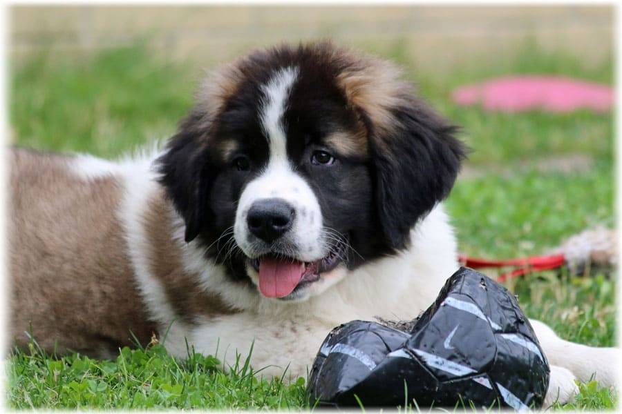 Важно: щенков московской сторожевой разрешается выгуливать только после двух комплексных прививок. До года малыша не нагружают длительными пешими походами и энергозатратными играми, таким образом давая суставам питомца окрепнуть