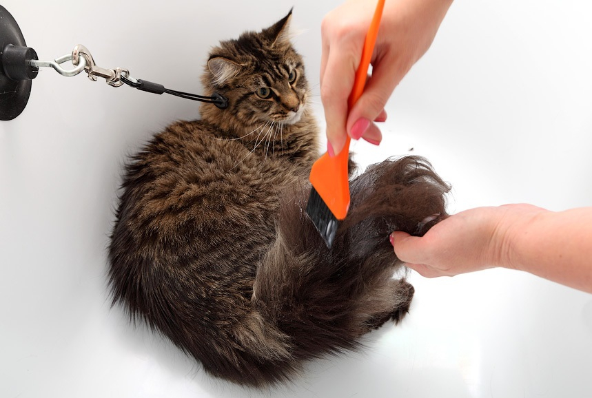 - Если у кота длинная шерсть, то животное следует тщательно вычесать перед началом процедуры.