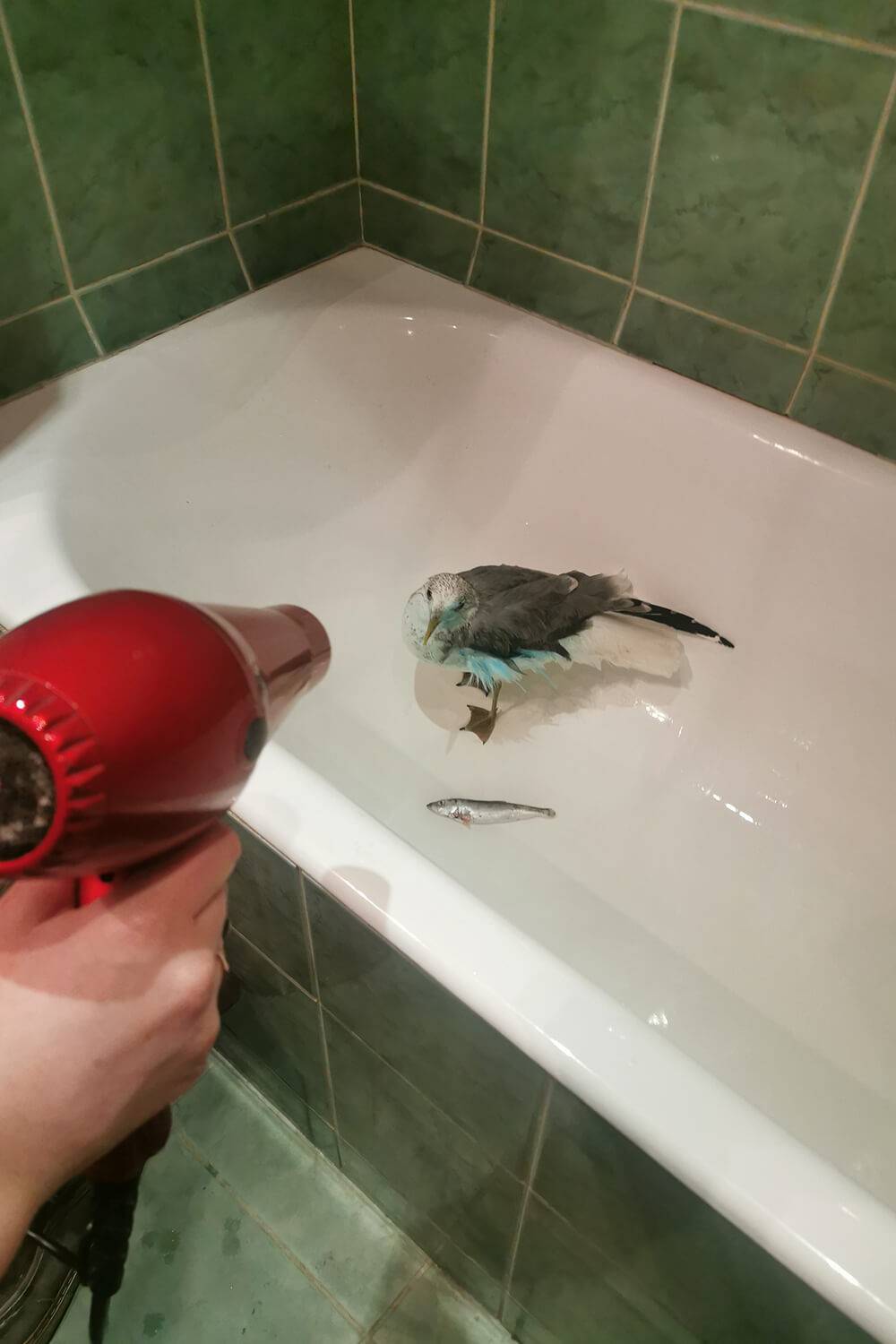 Это безымянная чайка. 24 января 2020 года ее нашла во дворе моя жена. У чайки было ранено крыло, и она не могла самостоятельно двигаться. На следующее утро мы повезли ее к знакомому орнитологу, ей пришлось ампутировать крыло, так как кости были уже раздроблены. Жаль, теперь она не сможет летать.