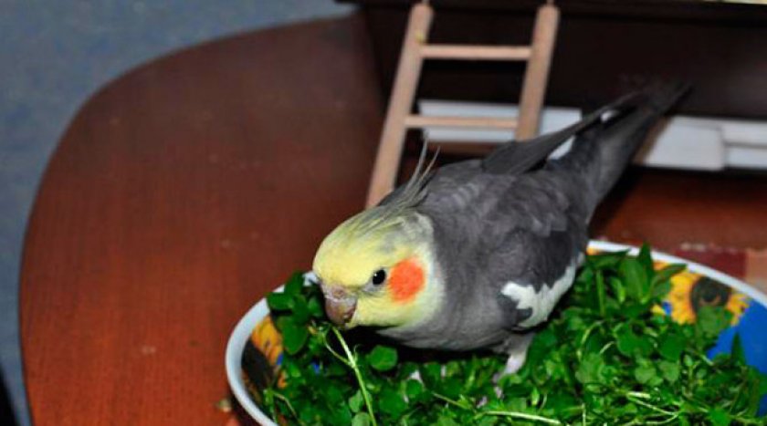 В неволе их кормят, в основном, сухими кормами, которые богаты белками и жирами, в отличие от зелени, содержащей большое количество клетчатки. Это обстоятельство является одной из причин того, что птицы в неволе страдают ожирением. Чтобы хоть как-то компенсировать это обстоятельство, следует вводить в рацион кореллы как можно больше зелёной травы, например, такой: