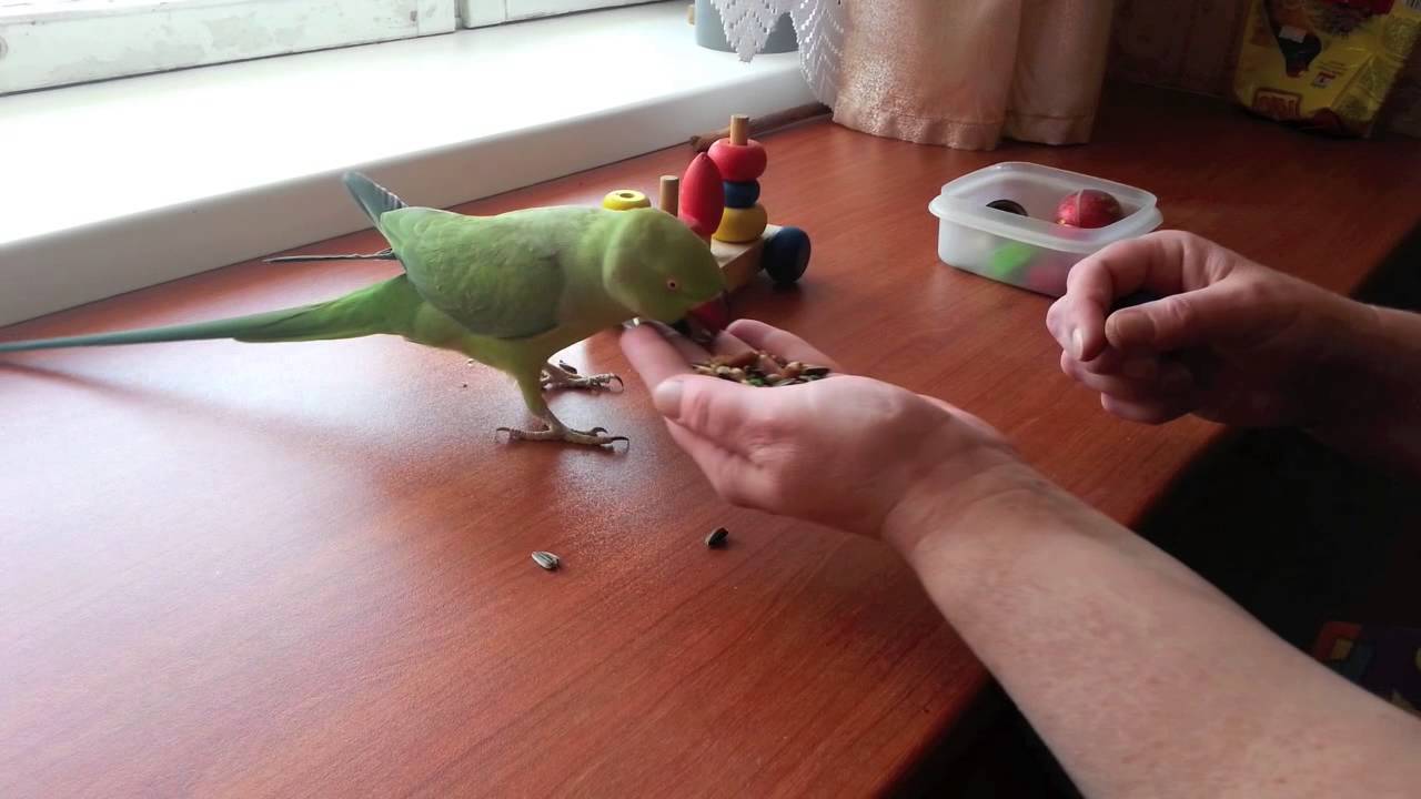После того, как птичка освоится, можно приступать к приручению, для чего она кормится вкусными продуктами с руки. Уже буквально через месяц птенец будет спокойно относиться к хозяину, а также будет самостоятельно переходить на подставленную руку.