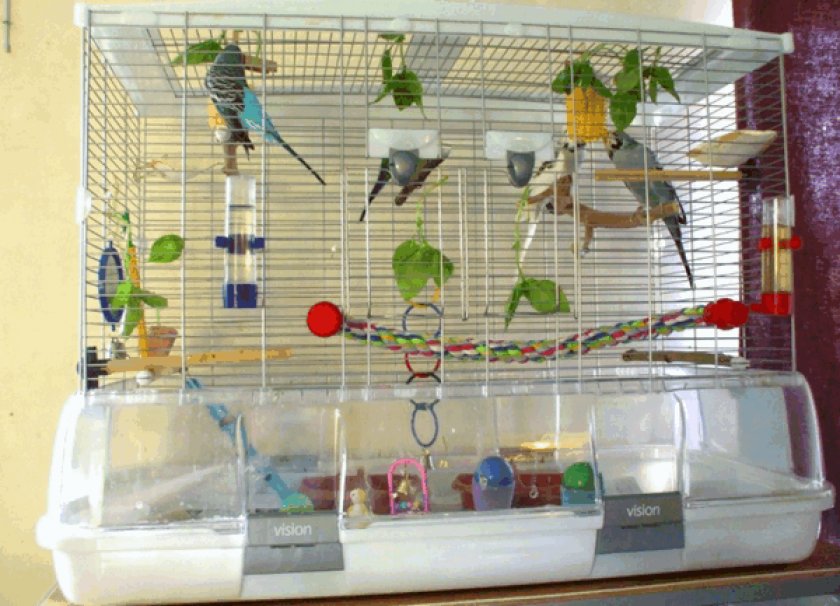 В клетке надо поддерживать порядок и регулярно убирать мусор, так как попугаи плохо переносят беспорядок. Убирать клетку надо утром и вечером без всяких химических средств, просто протирать тёплой водой. Раз в месяц дезинфекцию можно провести отваром полыни.