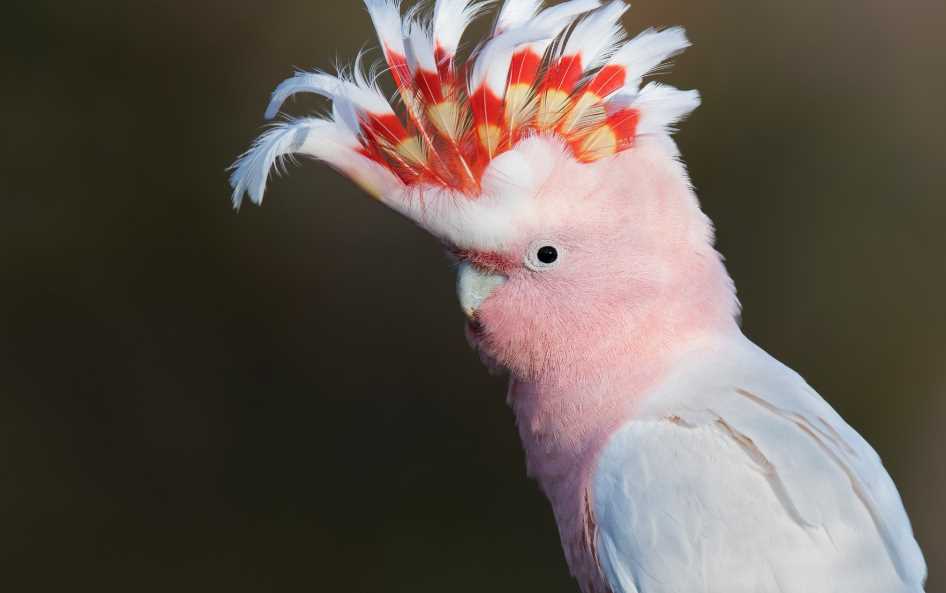 - Розовый Какаду – облик не схож с другими видами семейства и делится на подвиды. Спина, крылья и хвост серого цвета, грудка и шейка розового, верхняя часть головы нежно — розовая. Способный жить до 50 лет.