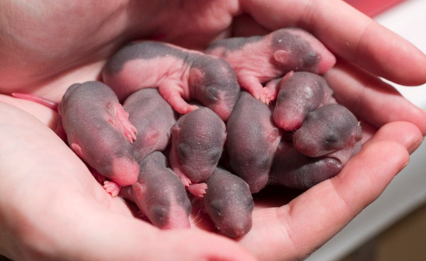 Важно! Сразу после рождения нельзя малышей брать в руки, иначе самка откажется от них или вовсе съест. Интересно, что практически сразу после рождения можно определить, каким будет окрас грызуна
