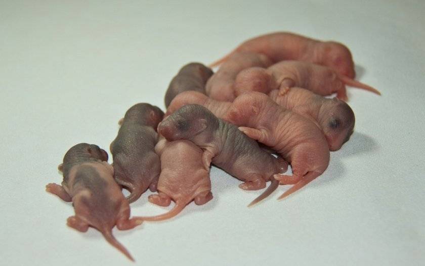 Сразу после рождения крысята – это голые розовые слепые и глухие малыши с недоразвитыми конечностями и маленьким хвостом, которые могут только пищать, сосать и спать.