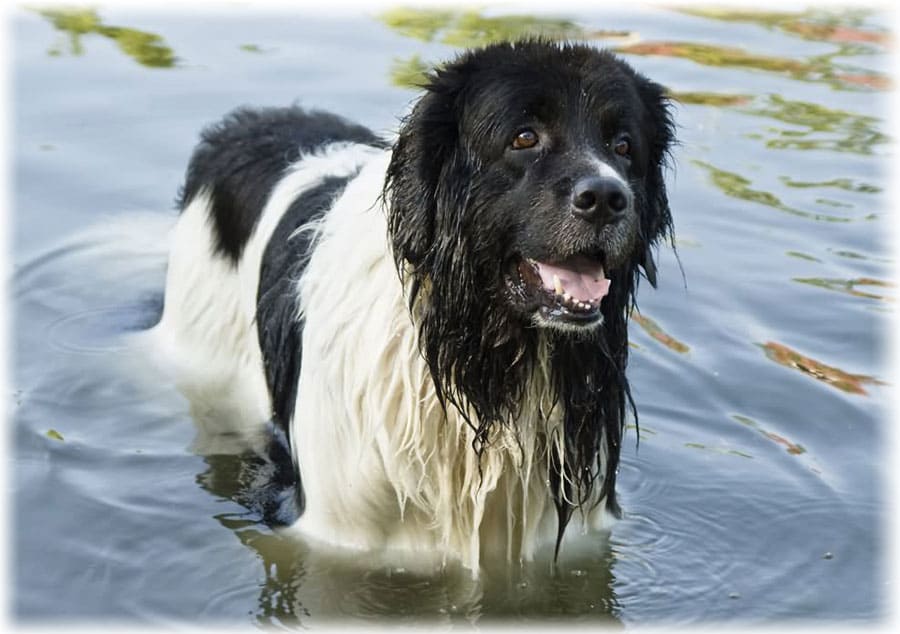 Ландсир – черно-белый окрас, который встречается крайне редко. Всего около двадцати процентов популяции собак обладают этим уникальным окрасом. Больше такие собаки похоже на сенбернаров.