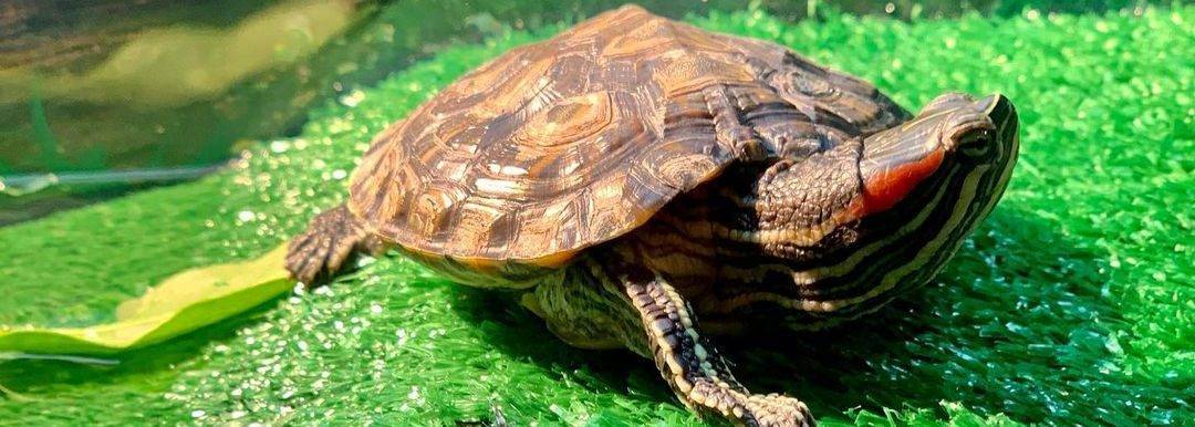 - Раз в неделю черепаху выпускают из аквариума. Прогулки препятствуют развитию ожирения. Гулять с животным можно и на улице, однако нужно защищать рептилию от контактов с кошками и собаками.