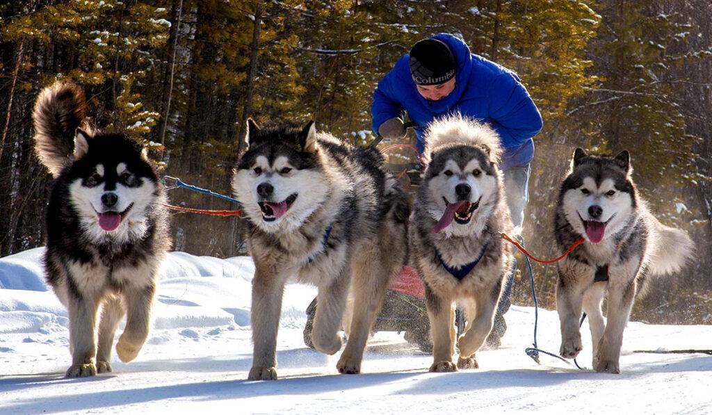 ездовые собаки. Животные выступают в качестве тягловой силы на снегу/льду, используются для перевозки людей и грузов, а также для буксировки лодок. Мощь, выносливость и устойчивость к низким температурам — отличительные качества ездовых питомцев. Для этих целей, как правило, используются лайки, маламуты и самоеды. Питомцы способны преодолевать препятствия от 40 до 60 км в сутки. Они не нуждаются в подножном корме;