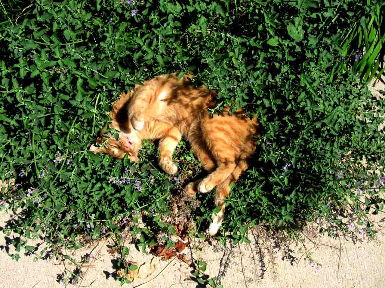 На организм человека кошачья мята воздействует расслабляюще, но на кошек это растение оказывает прямо противоположный эффект. Кошки возбуждаются, начинают кувыркаться и перекатываться по земле, тереться обо все и особенно о кусты котовника кошачьего, надкусывают листья, в общем поведение кошек от этого растения можно назвать не просто странным, а очень странным.