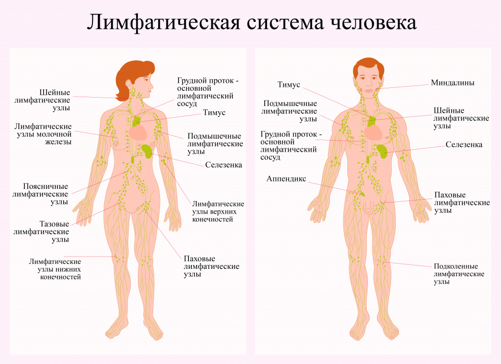 - Пищеварительный тракт: желудок, кишечник и многие другие органы также содержат лимфатическую ткань.