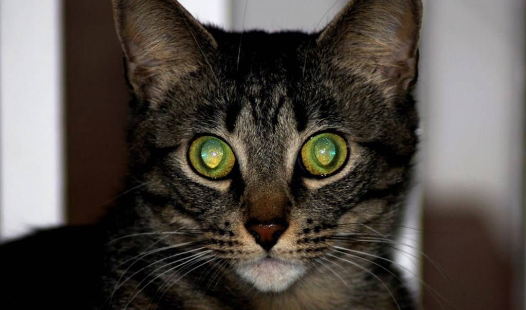 На самом же деле глаза усатых любимцев вовсе не трансформируются в ночные прожекторы. Для того чтобы возник эффект свечения, полная тьма как раз и не нужна. Глаза животного всего лишь отражают свет, а не излучают его.