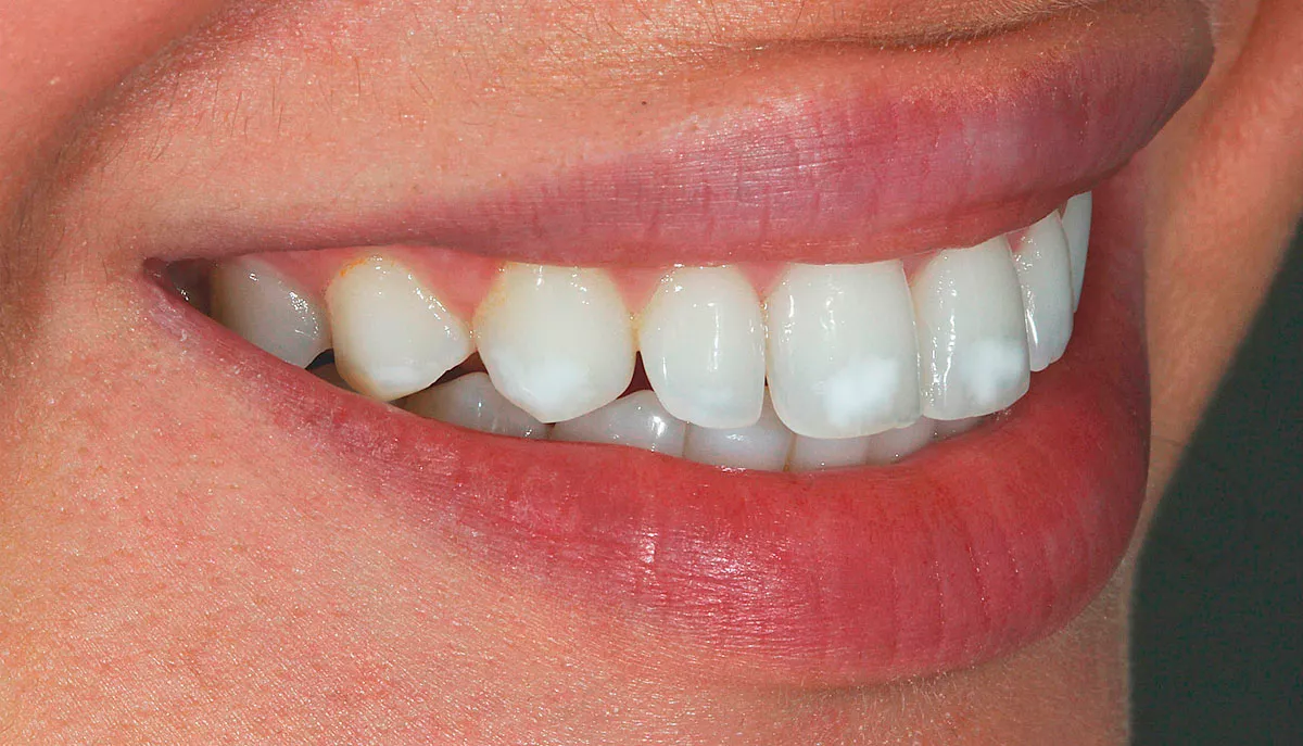 Проявляется в виде белого пятна – признак того, что эмаль начинает терять минеральные вещества (процесс деминерализации эмали). Протекает без боли. Консервативное лечение кариеса в виде реминерализации: проводятся профессиональная чистка и полировка зубов, аппликации специальными растворами и гелями (10% раствор глюконата кальция, кальциевый гель и др.), внутрь назначаются препараты кальция и фтора («Кальцинова», натрия фторид и др.). Всего для полного исчезновения пятна потребуется 12–15 процедур.