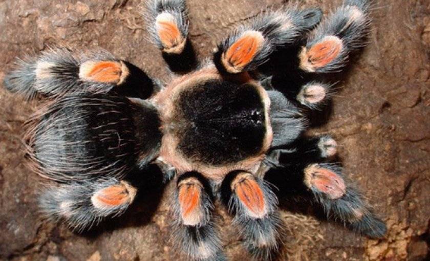 - Мексиканский паук-птицеед или краснокнижный тарантул. Данный вид относится к роду Brachypelma. Брахипельма Смитти известен своим послушным характером, поэтому его часто держат в качестве домашнего животного. Общие характеристики паука: масса тела — 20-40 грамм, размер тельца — до 9 см, размах лап — до 17 см. Обитает в Мексике и на юге США.