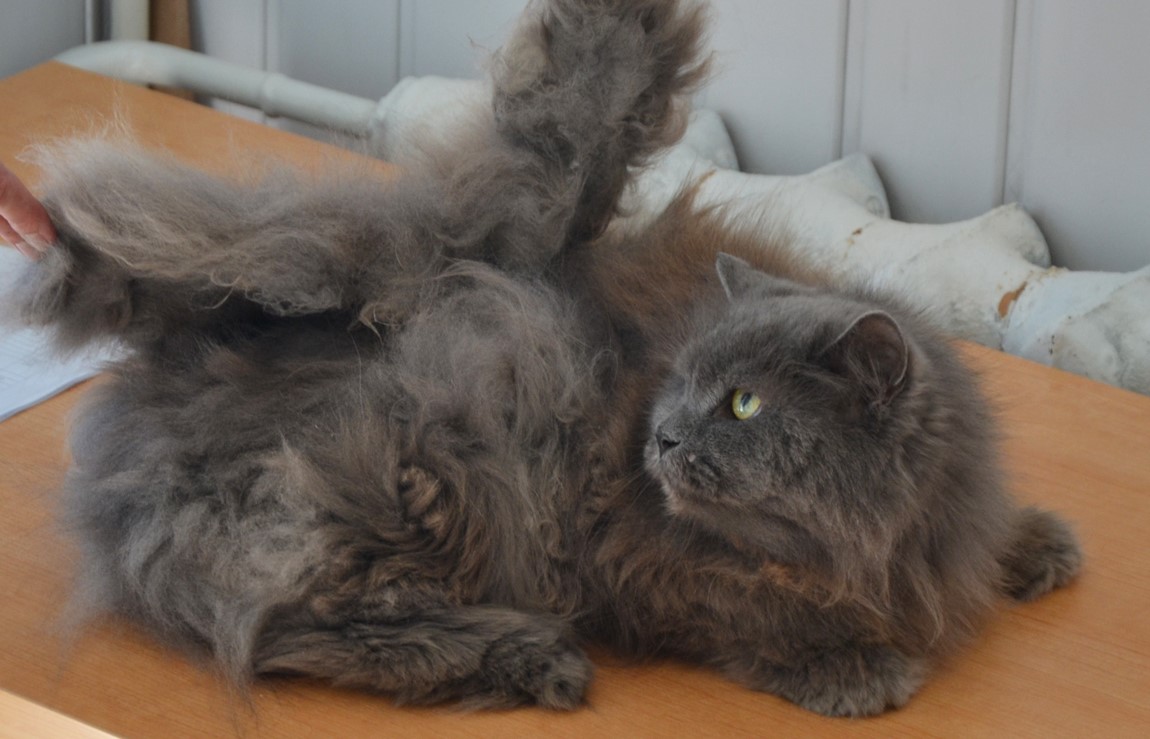 Совет! После вычесывания пройдитесь по шерсти кошки ладонями, смоченными водой. Это поможет снять статическое напряжение и удалить мелкие выпавшие волоски.