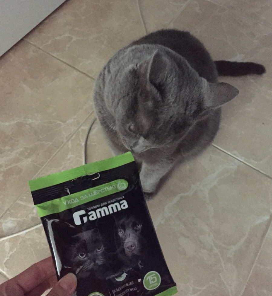 Салфетки подходят и для кошек любых гладкошерстных пород в качестве дополнительного уходового средства. Ими можно пройтись по шерсти после обработки ее фурминатором или щеткой. Влажная салфетка уберет мелкие выпавшие волоски, придаст меху кошки красивый блеск.