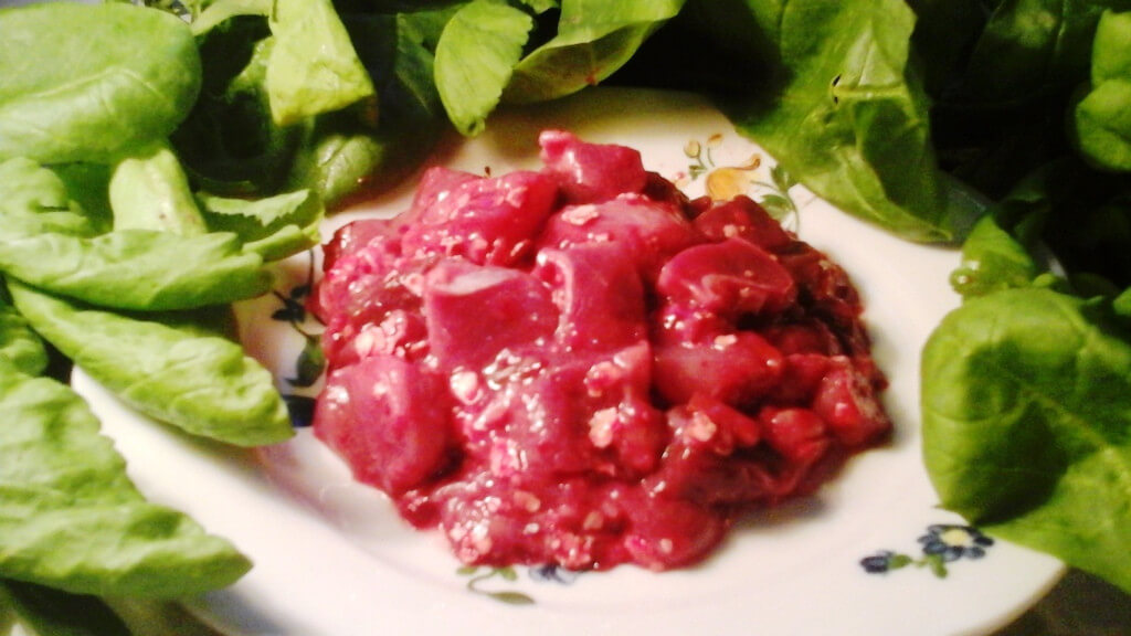 В таком случае основным продуктом выбирается свежее мясо. Не менее семидесяти процентов. Перед подачей его хорошенько вымораживают или обдают кипятком. Измельчают на мелкие кусочки. Смешивают с крупяными кашами и выкладывают в миску.