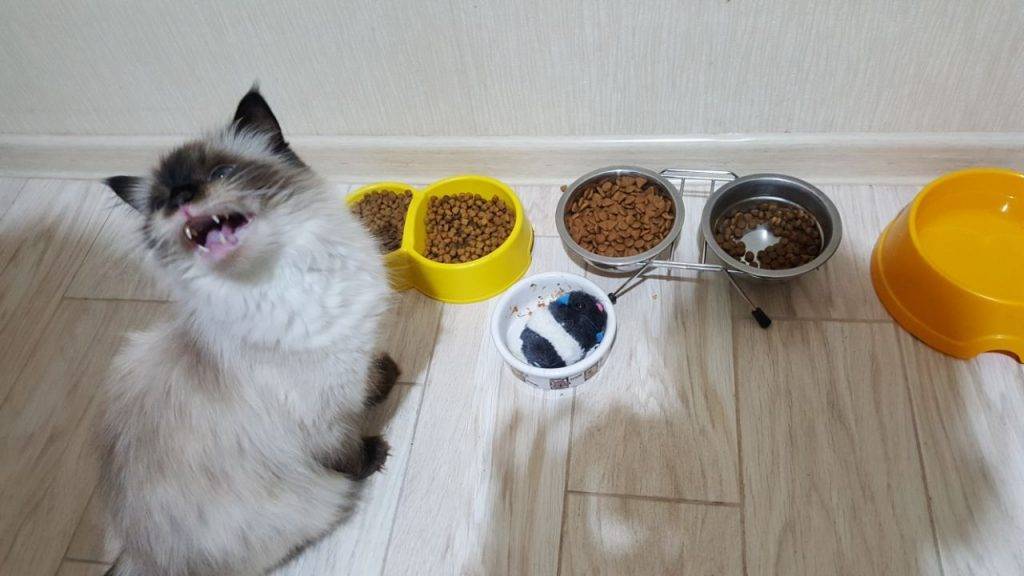 Также нужно учитывать не только количество обычной воды, а и жидкость в корме. При кормлении молоком, кефиром, ряженкой, влажными кормами… кошка может очень долго обходиться без воды. Она получает воду вместе с едой.