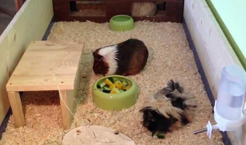 Зелёные корма можно заменить корнеплодами из расчета 100 гр на одну особь и сена в количестве 60 гр. Утром грызунам дают корнеплоды, овёс и отруби. В вечернее время свинкам дают сено, воду и молоко.