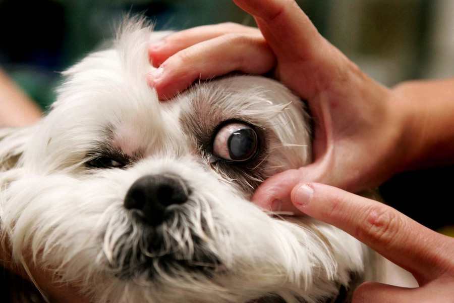 Паразитов, которые живут в глазах – когда черви подрастают, собака видит их, как темные, плавающие пятна. Пытаясь навести резкость зрения, четвероногий мотает головой и чешет глаза.