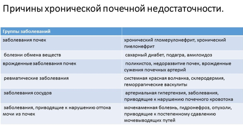 - Почечная недостаточность в хронической форме.