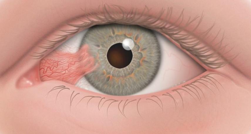 Плёнка, красноватого цвета, образующаяся на роговичной оболочке глаза, называется птеригиумом. Крыловидная плева состоит из головки, части сросшейся с роговицей, тела, пронизанного сосудами и шейки. Разрастание слизистой обычно появляется во внутренней части глаза, имеет заострённый конец. Не исключено возникновение на внешней стороне одного или обоих глаз. Форма отмечается стационарная и прогрессирующая. При увеличении может возникнуть слезотечение, покраснение, жжение, зуд. Это образование носит доброкачественный характер, различают по состоянию сосудов три степени. Но для сохранения зрения, целостности роговицы и ликвидации косметического дефекта удаление необходимо. Чем меньше площадь захвата, тем эффективнее будет результат. Лучше оперировать на ранних стадиях, крыловидная плева не перекрыла центр оптической зоны роговицы.