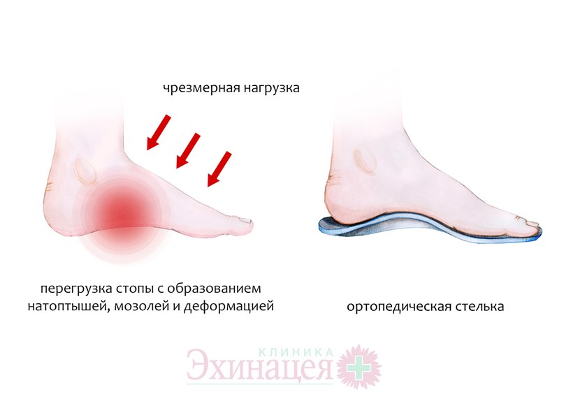 Образование подошвенных бородавок, натоптышей, мозолей при перегрузке участков стопы