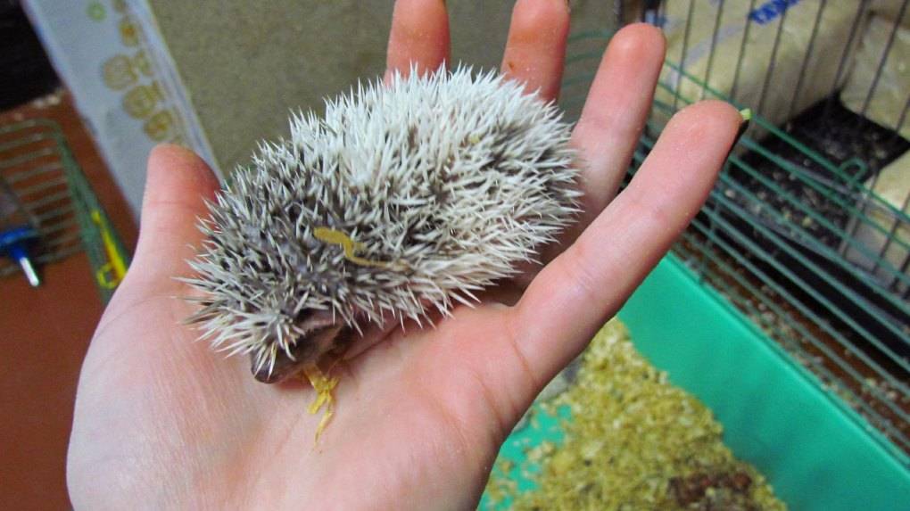 Попробуйте осторожно приподнять любимца за брюшко. Если он пускает в ход иглы, сделайте это при помощи одеяльца или полотенца — ёжик перестанет паниковать и успокоится